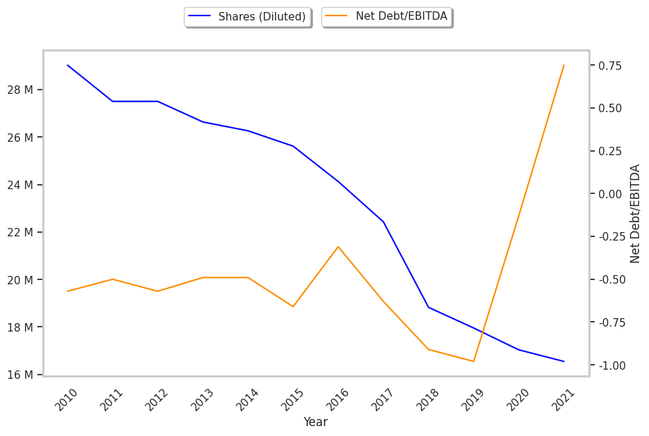 | Net Debt / EBITDA | -0.31 | -0.63 | -0.91 | -0.98 | -0.13 | 0.75 |