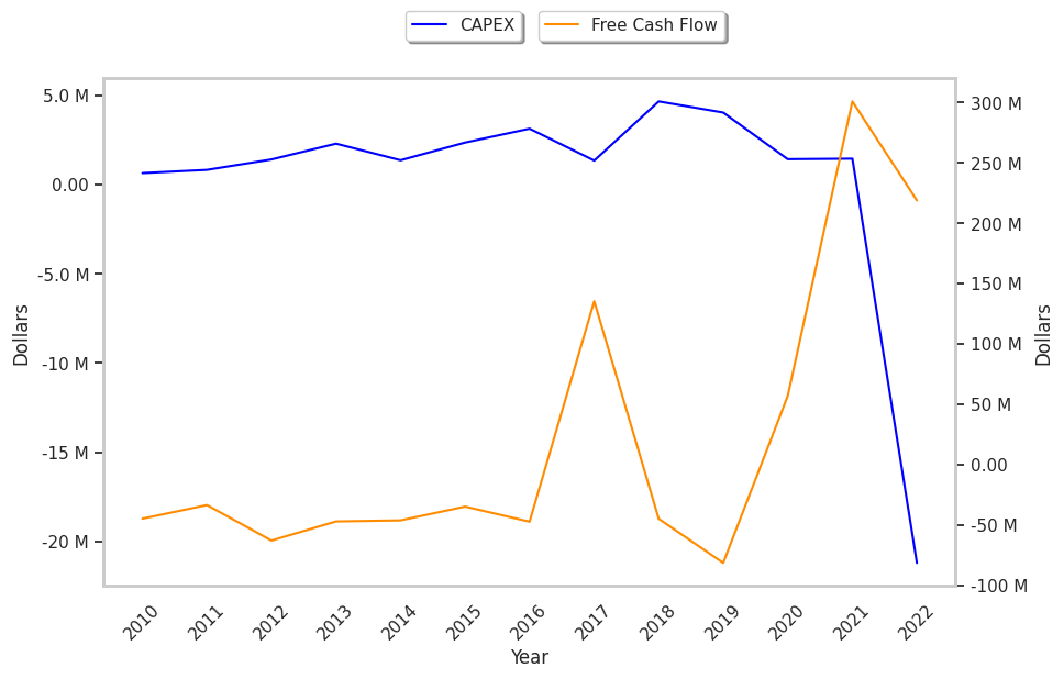 Free Cash Flow (k) $135,403 -$44,837 -$81,383 $56,882 $300,897 $218,914