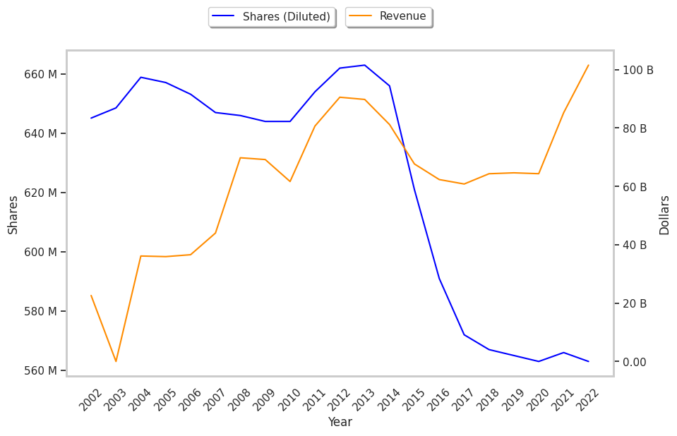 | Revenue (MM) | $60,828 | $64,341 | $64,656 | $64,355 | $85,249 | $101,556 |