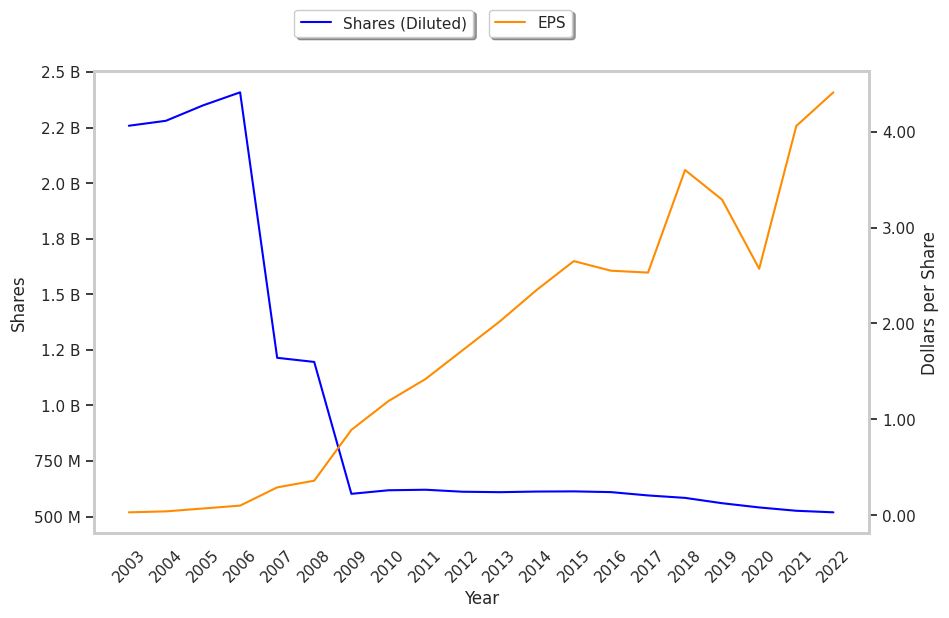 | Diluted Shares (MM) | 584 | 560 | 541 | 528 | 519 | 489 |