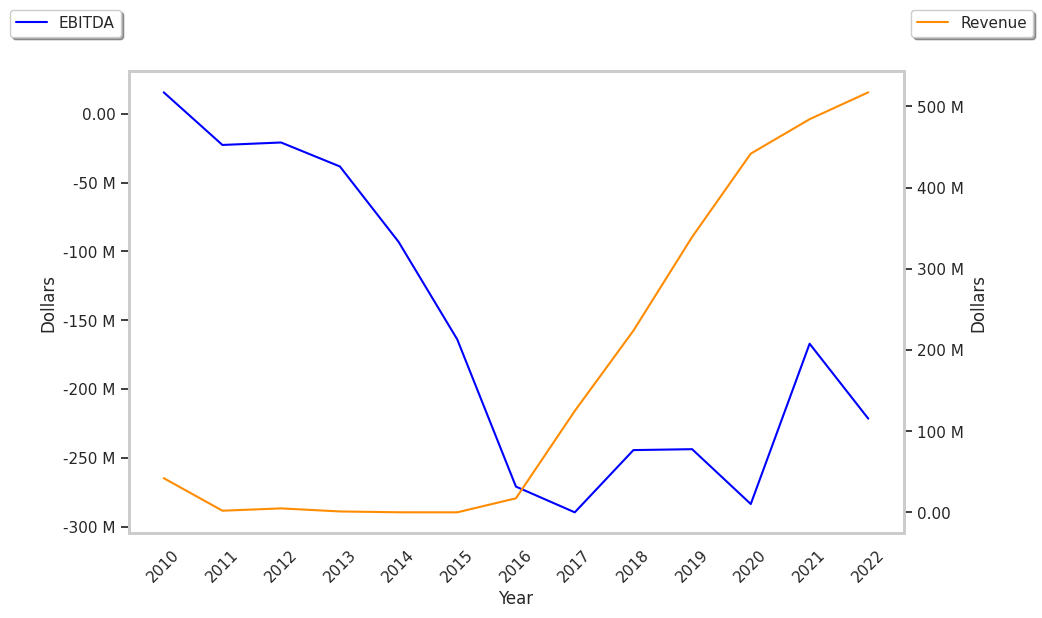 To understand the company's long term profitability and market position, we can analyze its operating margins, which are the ratio of its net profits to its revenues. Over the last four years, ACADIA Pharmaceuticals's operating margins have averaged -58.5% and displayed a mean growth rate of 22.3%. These numbers show that the company may not be on the best track.