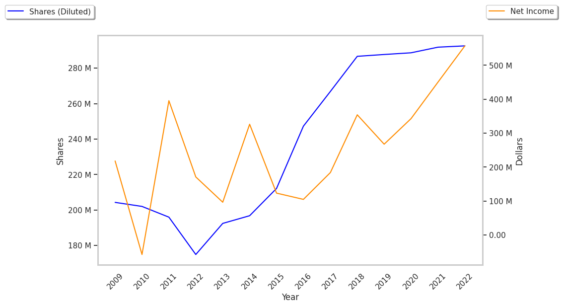 To determine Iron Mountain's EPS growth over time, we will average out its EPS for 2008, 2009, and 2010, which were $0.40, $1.07, and $0.16 respectively. This gives us an average of $0.54 for the period of 2008 to 2010. Next, we compare this value with the average EPS reported in 2021, 2022, and 2023, which were $1.55, $1.90, and $0.63, for an average of $1.36. Now we see that Iron Mountain's EPS growth was 151.85% during this period, which satisfies Ben Graham's requirement.