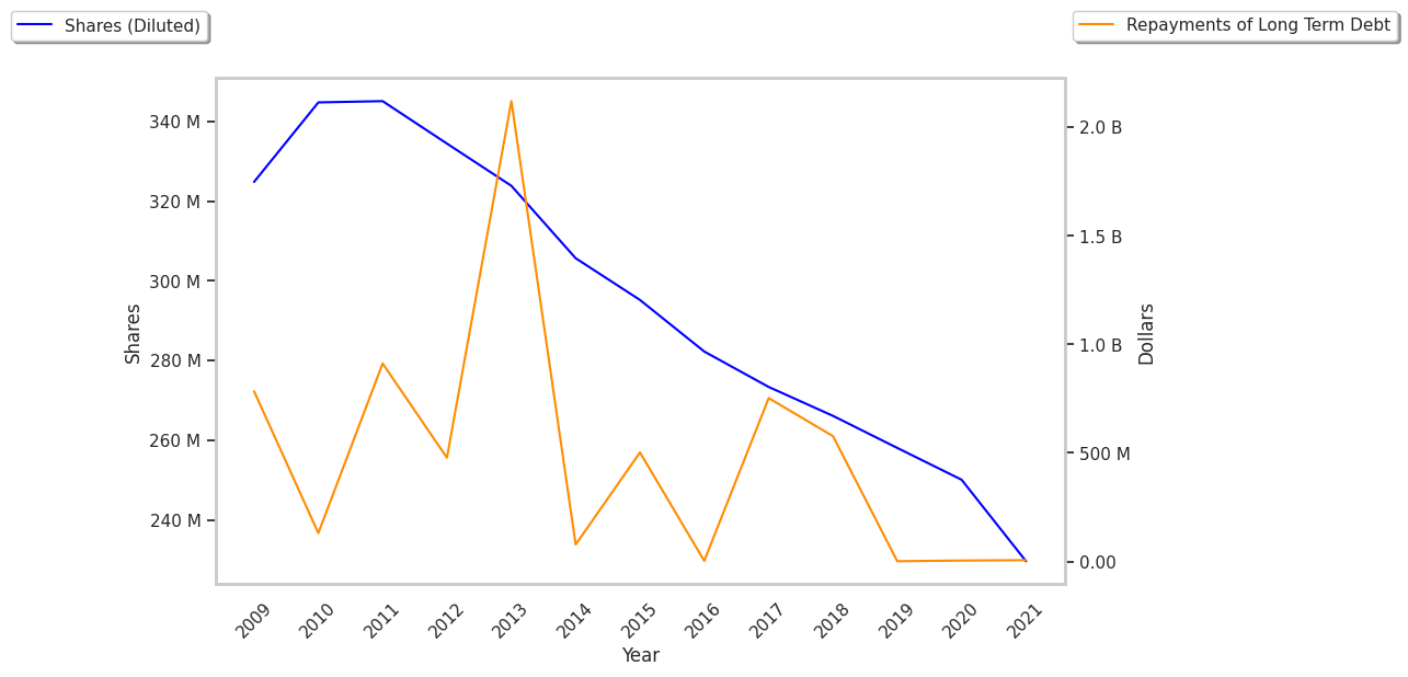 Dollar General had good record of retained earnings with an average of $2.23 Billion. Retained earnings are the sum of the current and previous reporting periods' net asset amounts, minus all dividend payments. It's a similar metric to free cash flow, with the difference that retained earnings are accounted for on an accrual basis.