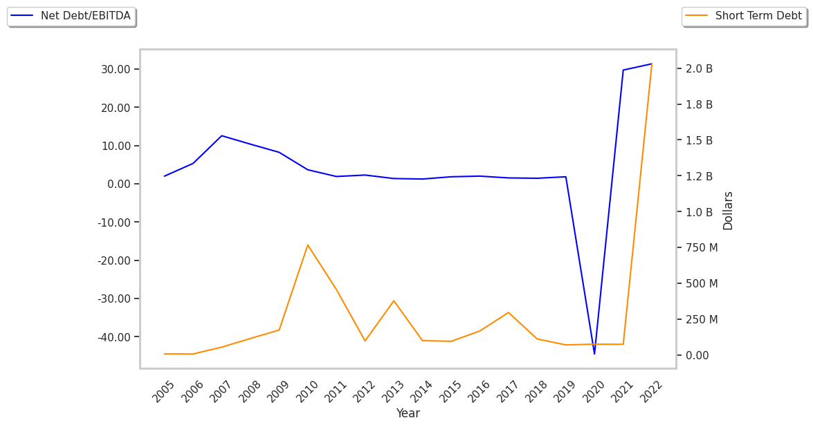 This means that its ratio of debt to net current assets should be 1 or less. Since Las Vegas Sands’s debt ratio is -1.0, the company has much more liabilities than current assets because its long term debt to net current asset ratio is -1.0. We calculate Las Vegas Sands’s debt to net current assets ratio by dividing its total long term of debt of $12.13 Billion by its current assets minus total liabilities of $17.67 Billion.