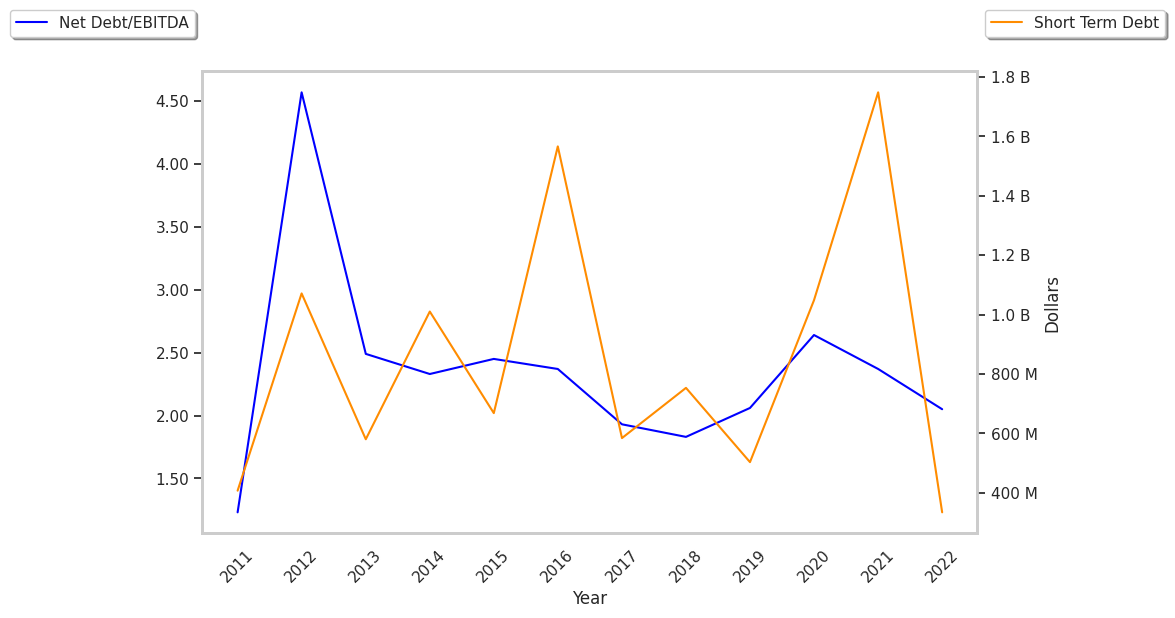 This means that its ratio of debt to net current assets should be 1 or less. Eaton has much more liabilities than current assets because its long term debt to net current asset ratio is -0.3. We calculate Eaton's debt to net current assets ratio by dividing its total long term of debt of $8.24 Billion by its current assets minus total liabilities of $38.43 Billion.