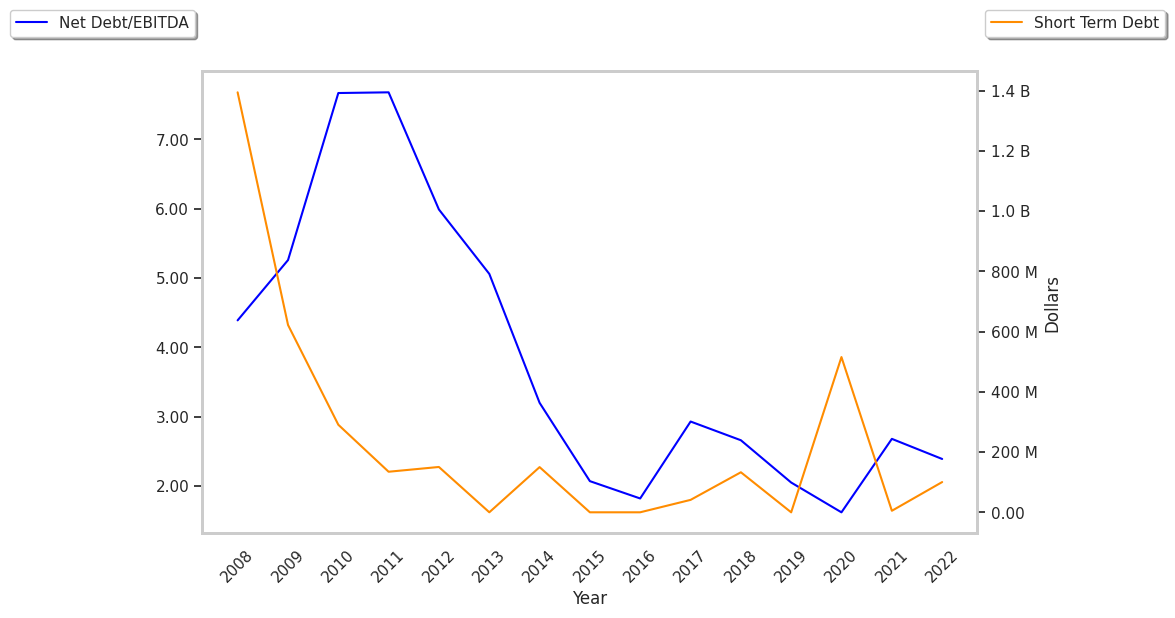 We calculate Vulcan Materials's current ratio by dividing its total current assets of $2.27 Billion by its total current liabilities of $1.24 Billion. Current assets refer to company assets that can be transferred into cash within one year, such as accounts receivable, inventory, and liquid financial instruments. Current liabilities, on the other hand, refer to those that will come due within one year. Vulcan Materials's current assets outweigh its current liabilities by a factor of 1.8 only.