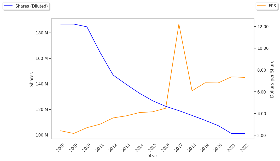 | Diluted Shares (M) | 111 | 107 | 103 | 99 | 96 | 90 |