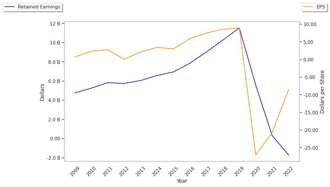 A comparison of the share price versus company earnings and book value should be balanced by an analysis of the company's ability to pay its liabilities. One popular metric is the Quick Ratio, or Acid Test, which is the company's current assets minus its inventory and prepaid expenses divided by its current liabilities. Royal Caribbean Cruises's quick ratio is 0.105. Generally speaking, a quick ratio above 1 signifies that the company is able to meet its liabilities.