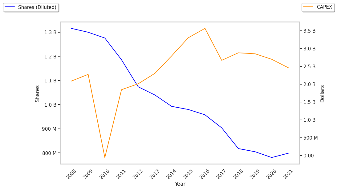 To determine Kroger Company's EPS growth over time, we will average out its EPS for 2008, 2009, and 2010, which were $1.73, $-1.35, and $0.32 respectively. This gives us an average of $0.23 for the period of 2008 to 2010. Next, we compare this value with the average EPS reported in 2023, 2024, and 2025, which were $3.06, $2.96, and $3.67, for an average of $3.23. Now we see that Kroger Company's EPS growth was 1304.35% during this period, which satisfies Ben Graham's requirement.