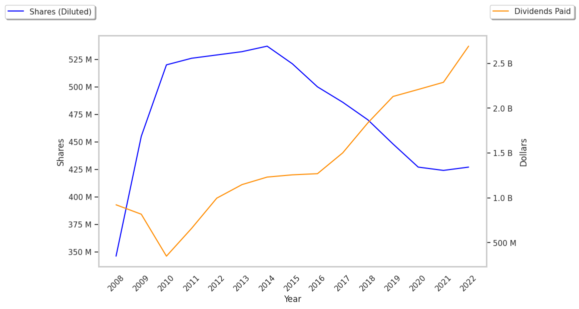 | Diluted Shares (M) | 448 | 427 | 426 | 412 | 401 | 400 |