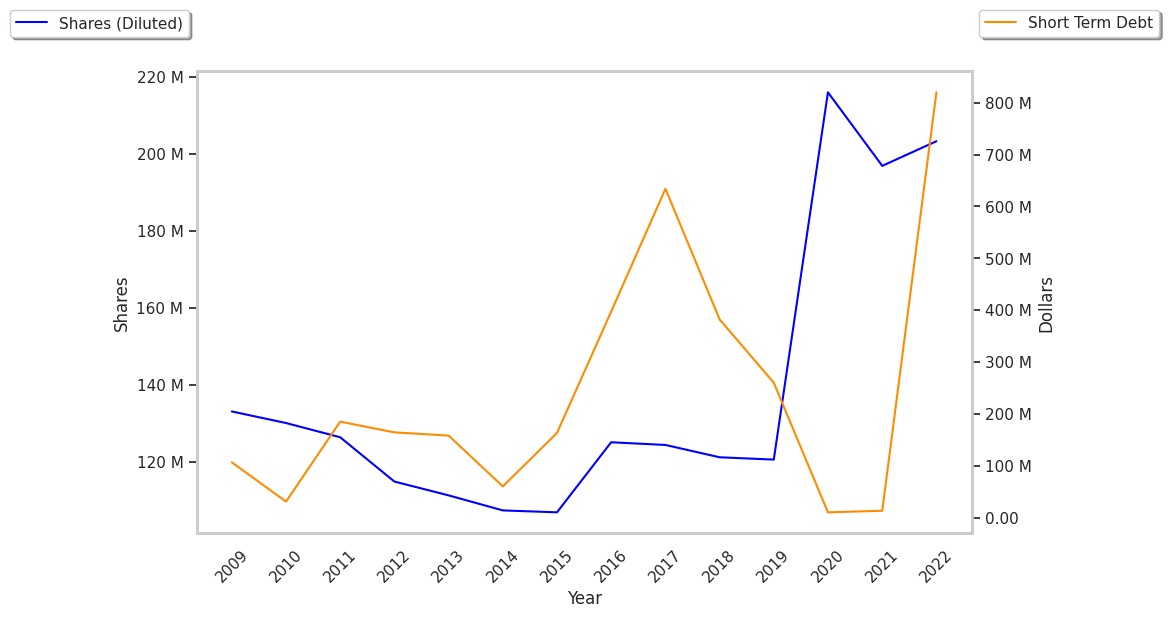 This means that its ratio of debt to net current assets should be 1 or less. L3Harris Technologies has much more liabilities than current assets because its long term debt to net current asset ratio is -0.8. We calculate L3Harris Technologies's debt to net current assets ratio by dividing its total long term of debt of $10.98 Billion by its current assets minus total liabilities of $21.96 Billion.