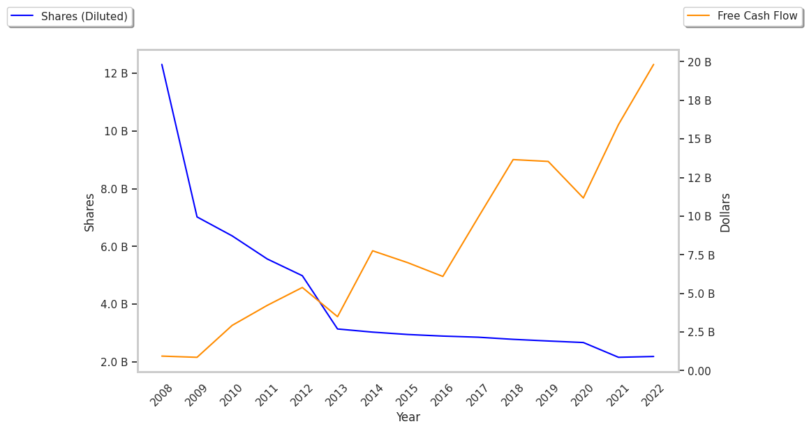 | Free Cash Flow (M) | $12,028 | $9,704 | $14,522 | $17,879 | $19,696 | $18,693 |